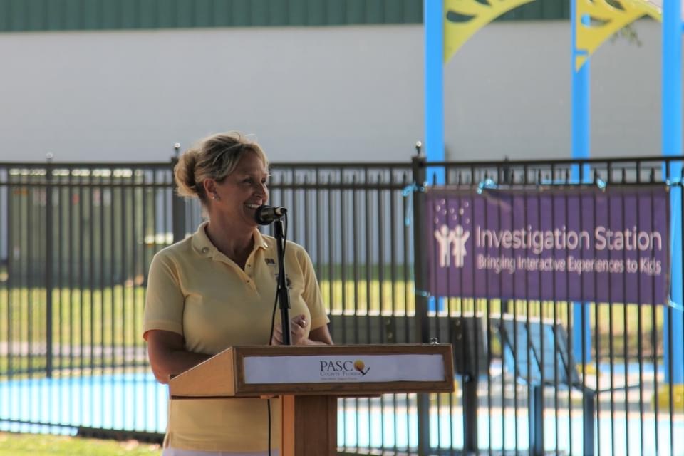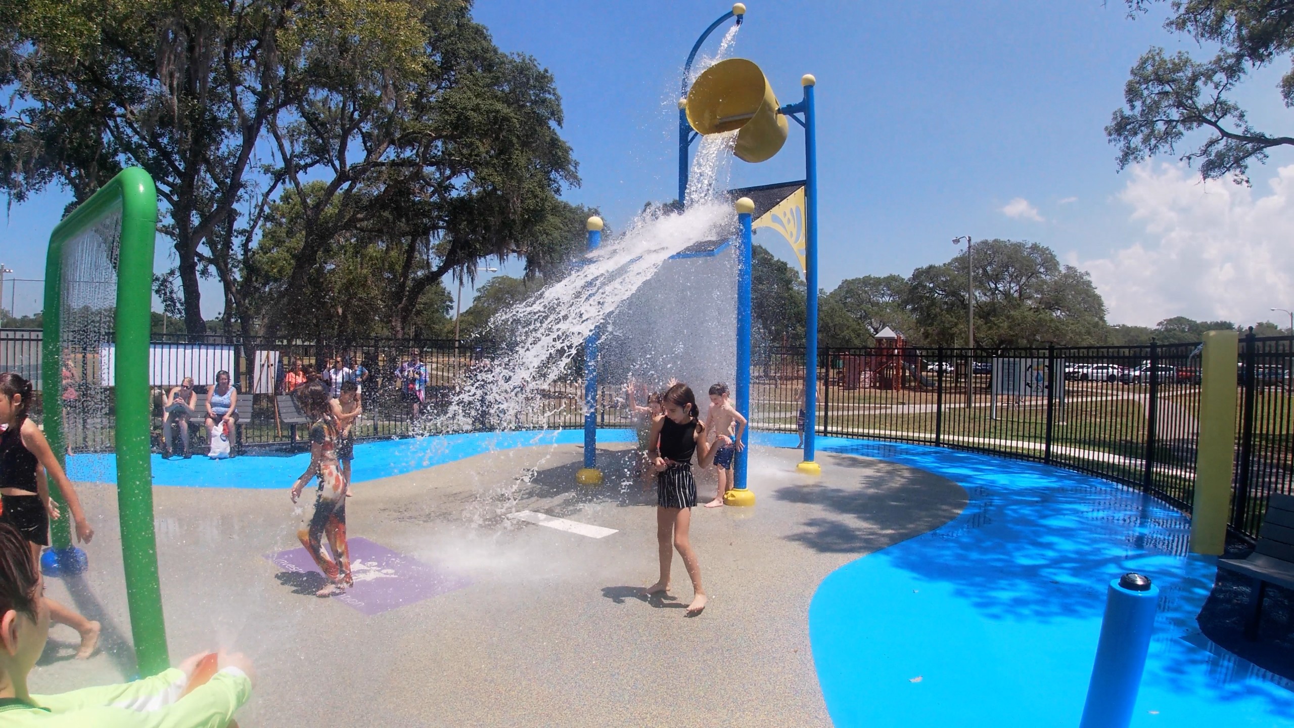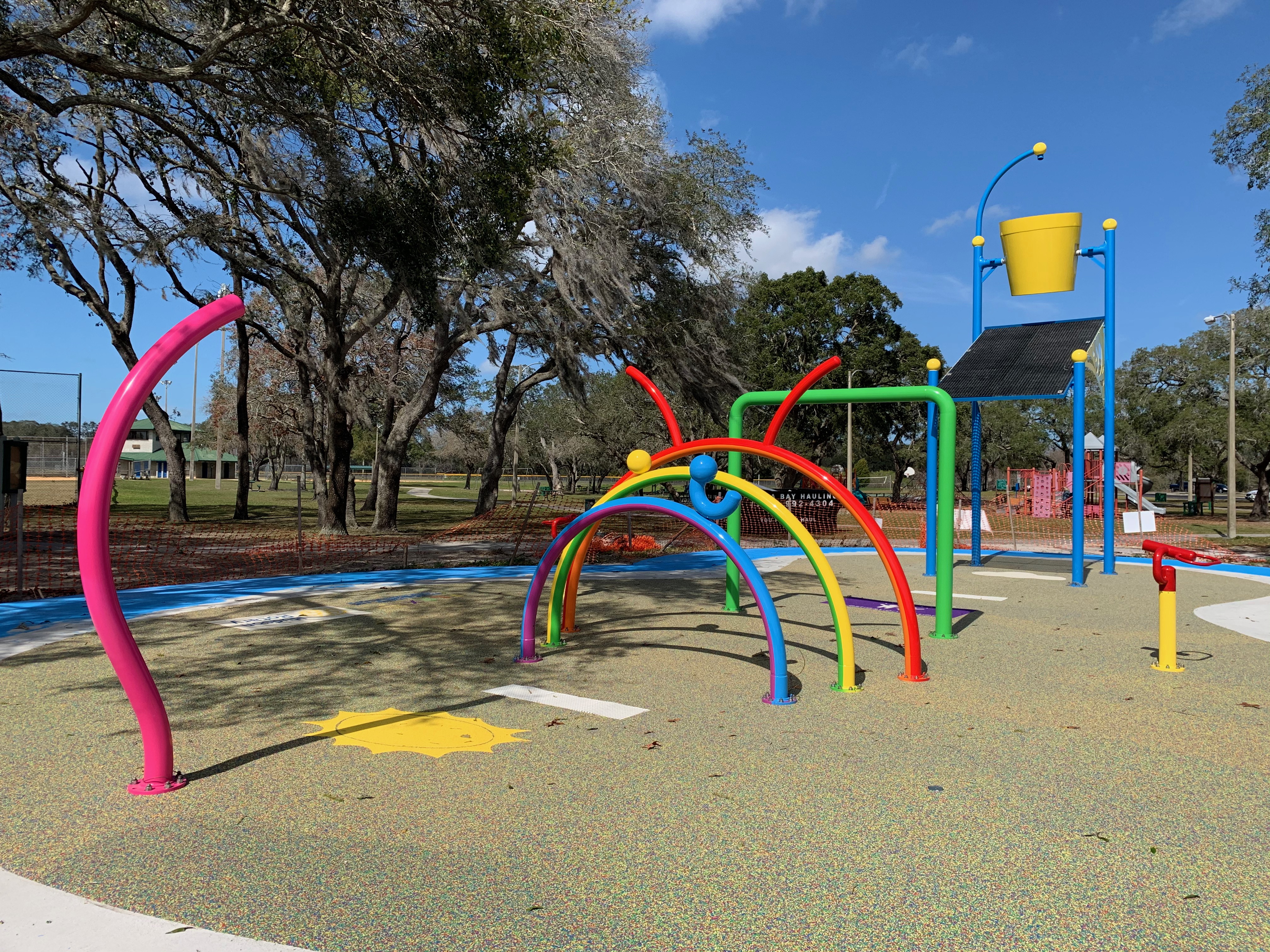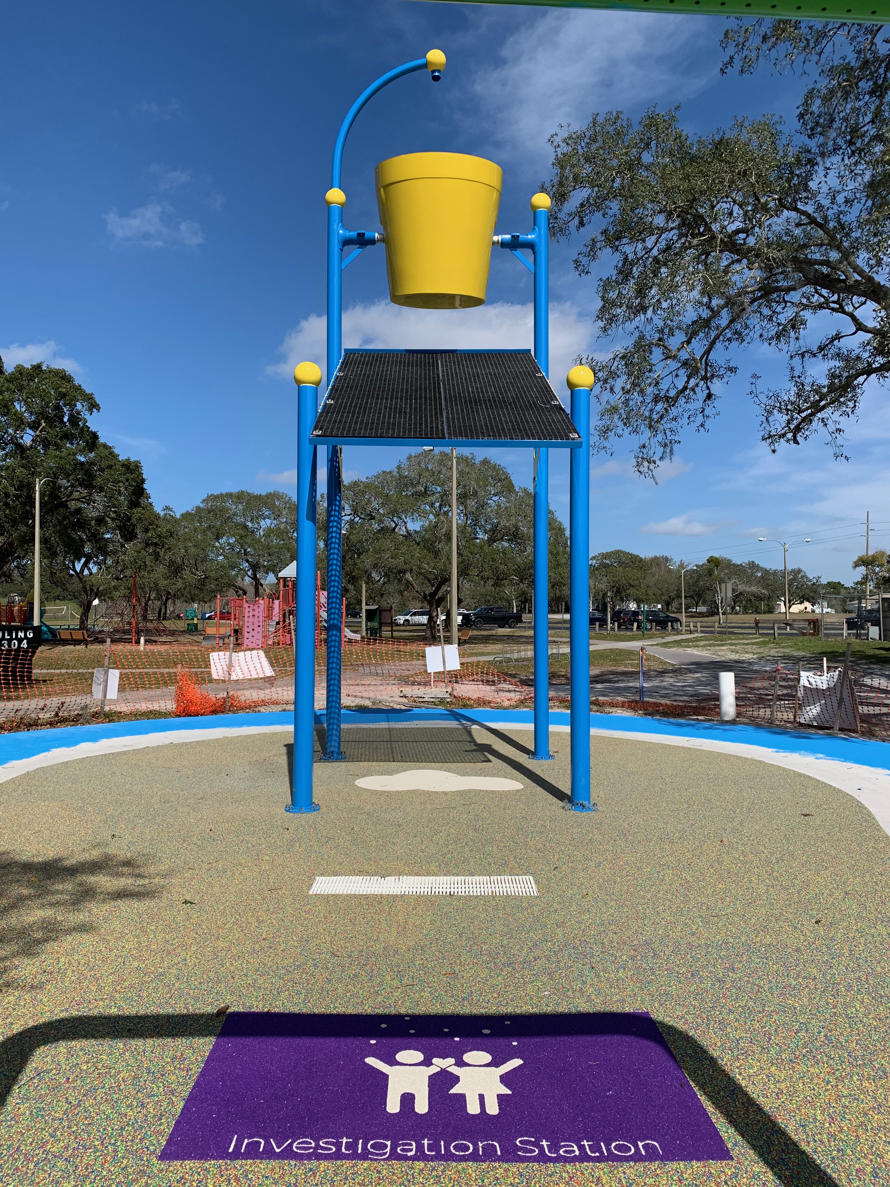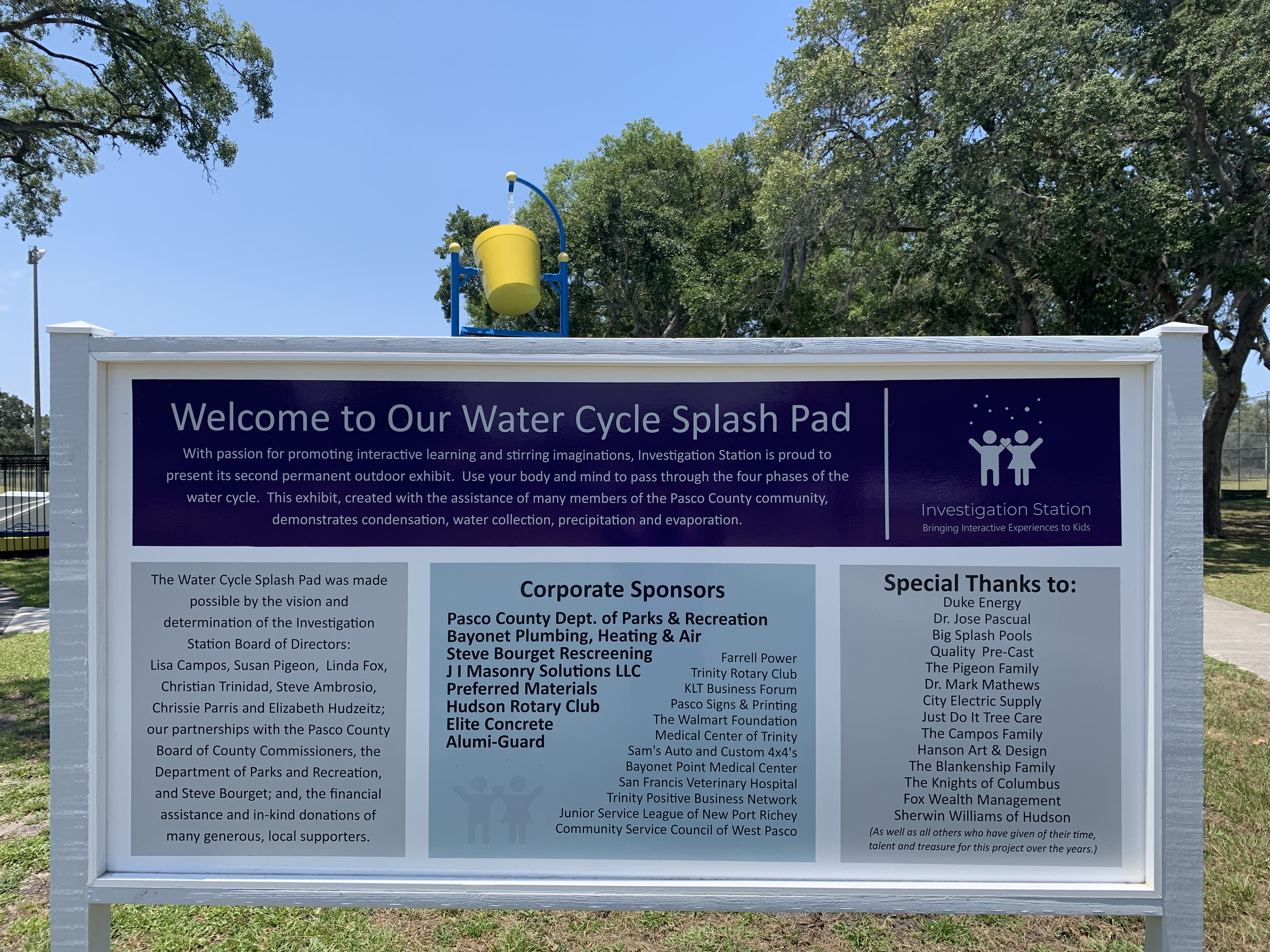 Investigation Station’s latest project is an educational splash pad, located in the Veterans Memorial Park in Hudson, FL. The splash pad features learning opportunities based on the water cycle.